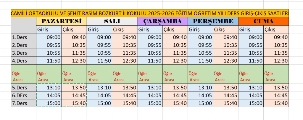 2025-2026 EĞİTİM ÖĞRETİM YILI GİRİŞ ÇIKIŞ SAATLERİ